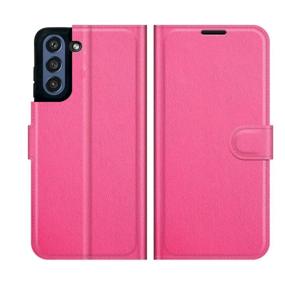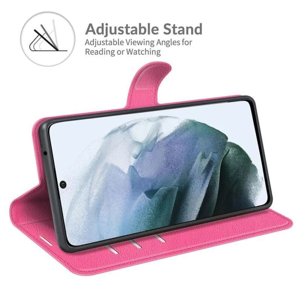 Litchi PU bőr pénztárca tok Samsung Galaxy S21 FE 5G - rózsaszínű