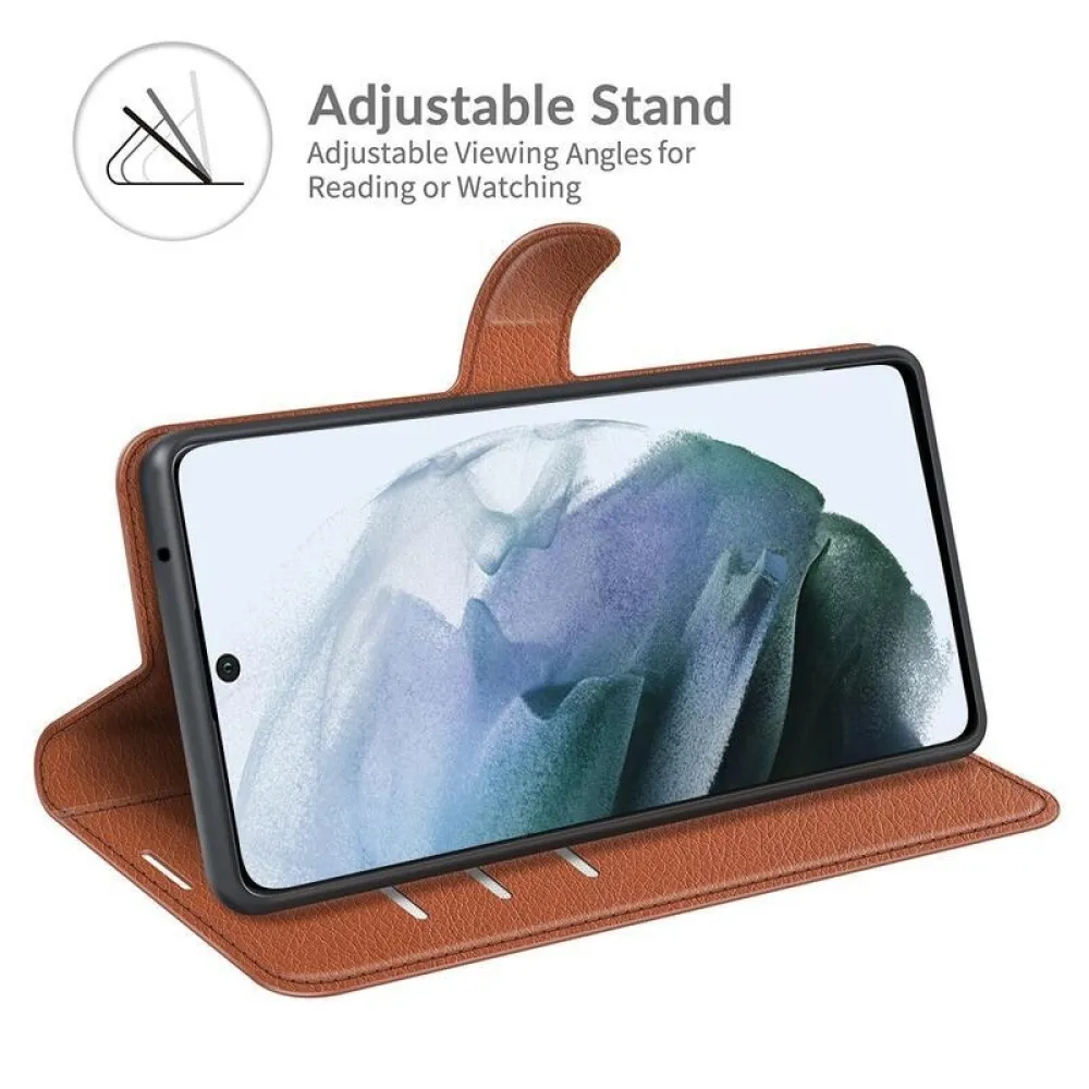 Litchi PU bőr pénztárca tok Samsung Galaxy S21 FE 5G számára - barna