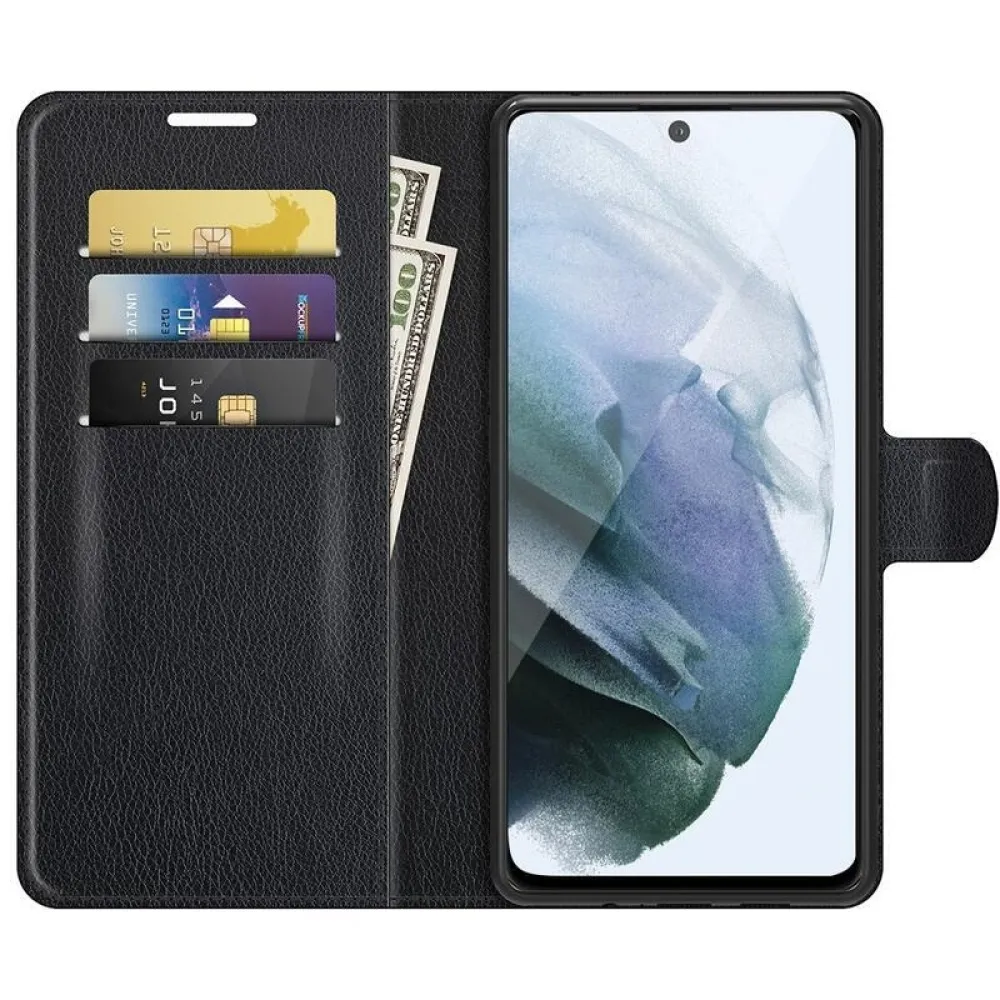 Litchi PU bőr pénztárca tok Samsung Galaxy S21 FE 5G számára - fekete