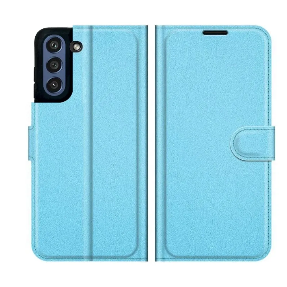 Litchi PU bőr pénztárca tok Samsung Galaxy S21 FE 5G számára - kék