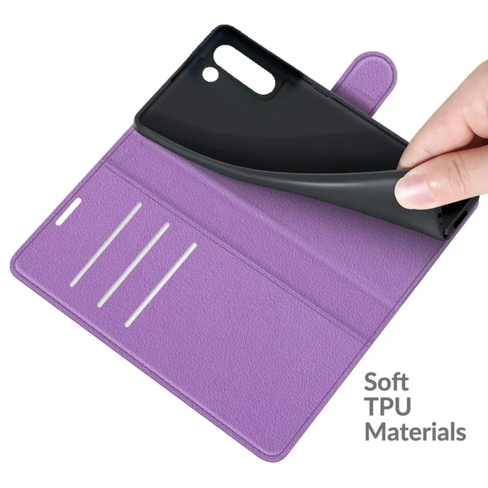 Litchi PU bőr pénztárca tok Samsung Galaxy S21 FE 5G számára - lila