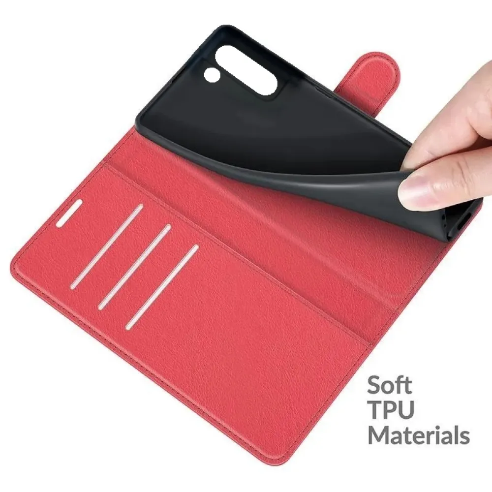 Litchi PU bőr pénztárca tok Samsung Galaxy S21 FE 5G számára - piros