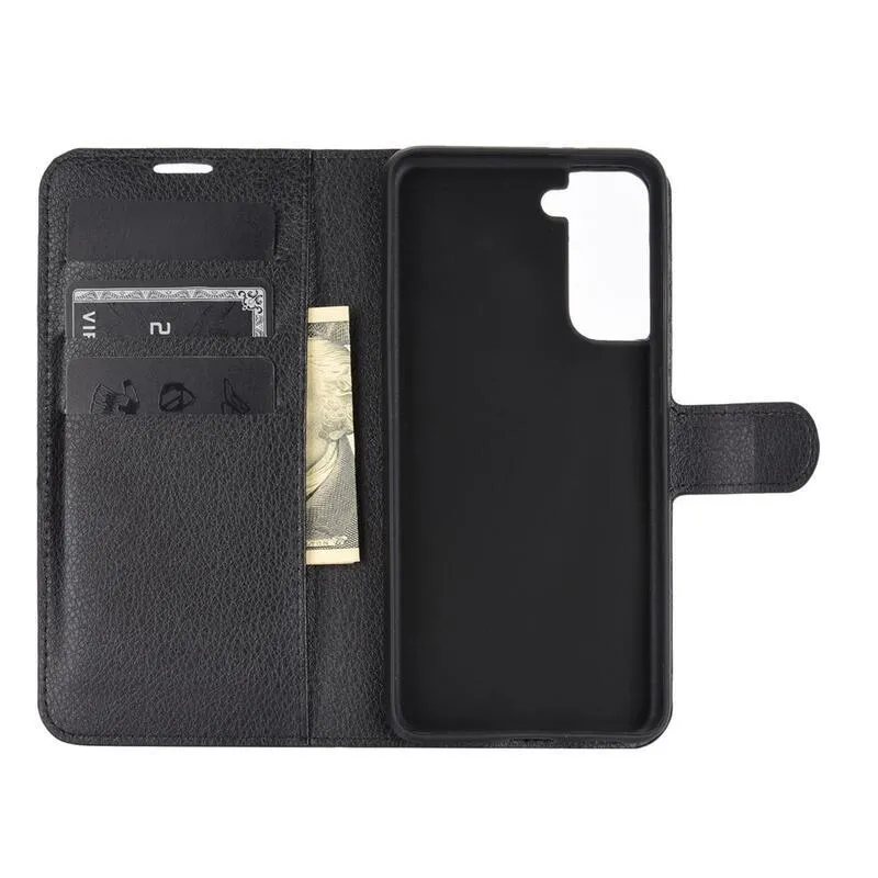 Litchi PU bőr pénztárca tok Samsung Galaxy S21 mobiltelefonhoz - fekete