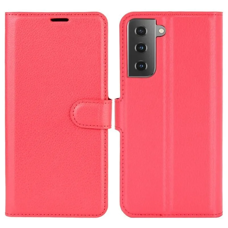 Litchi PU bőr pénztárca tok Samsung Galaxy S21 mobiltelefonhoz - piros