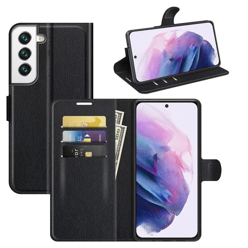 Litchi PU bőr pénztárca tok Samsung Galaxy S22 5G-hez - fekete