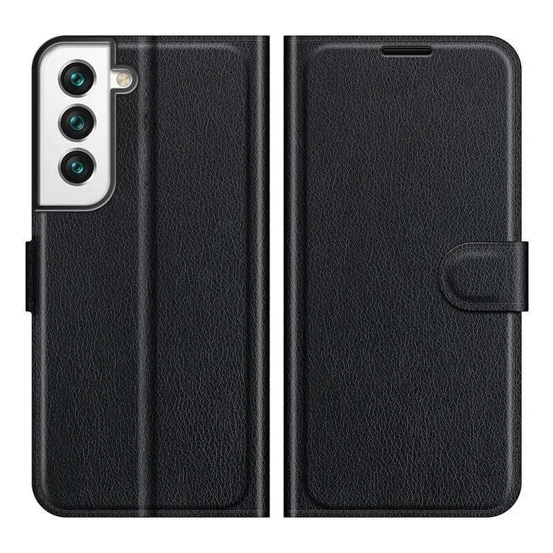 Litchi fekete könyv tok Samsung Galaxy S22 5G-hez