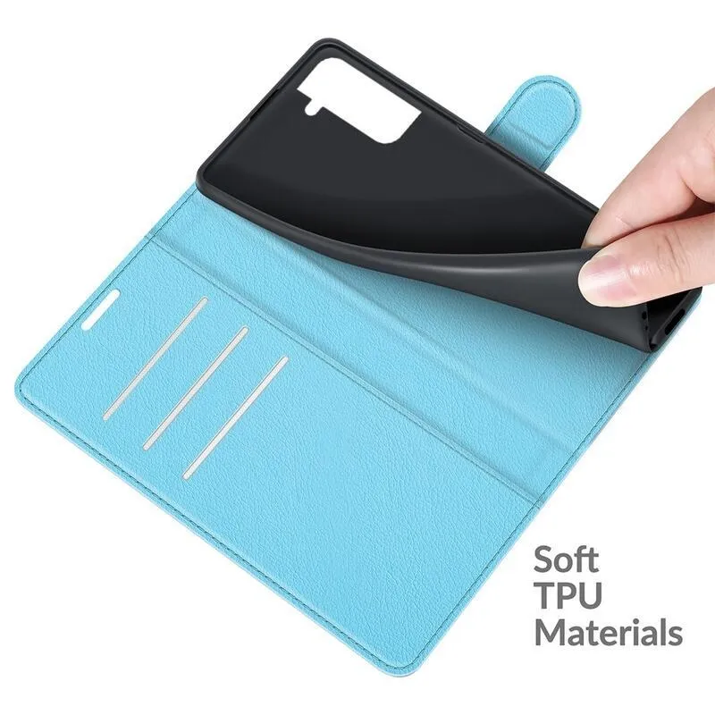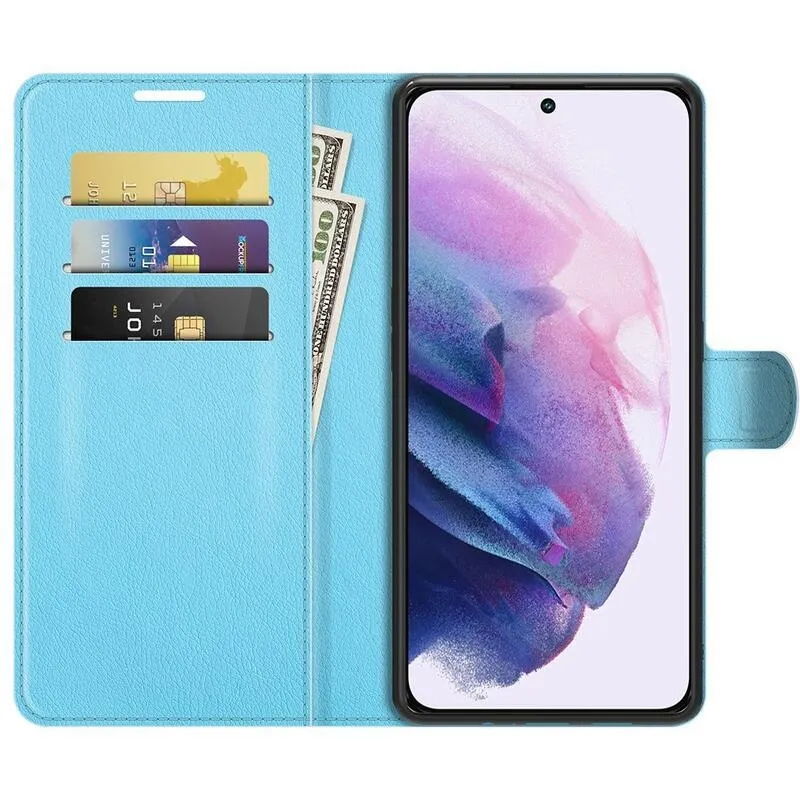 Litchi kék könyv tok Samsung Galaxy S22 5G számára