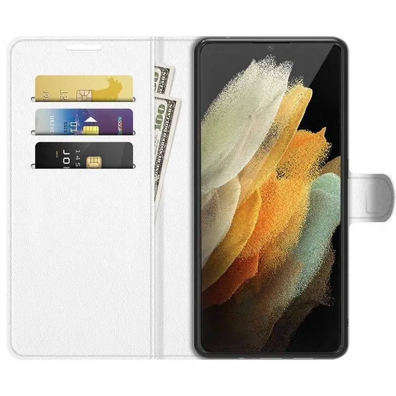 Litchi PU bőr pénztárca tok Samsung Galaxy S22 Ultra 5G - fehér