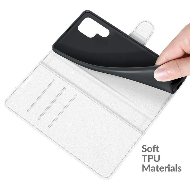 Litchi fehér könyv tok Samsung Galaxy S22 Ultra 5G számára