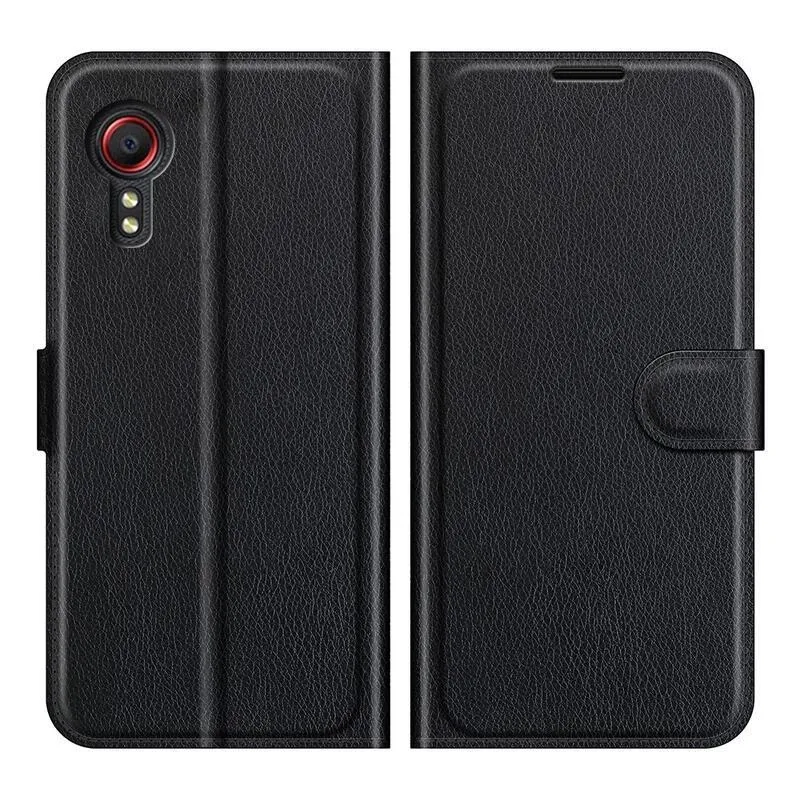 Litchi PU bőr pénztárca tok Samsung Galaxy Xcover 5 készülékhez - fekete
