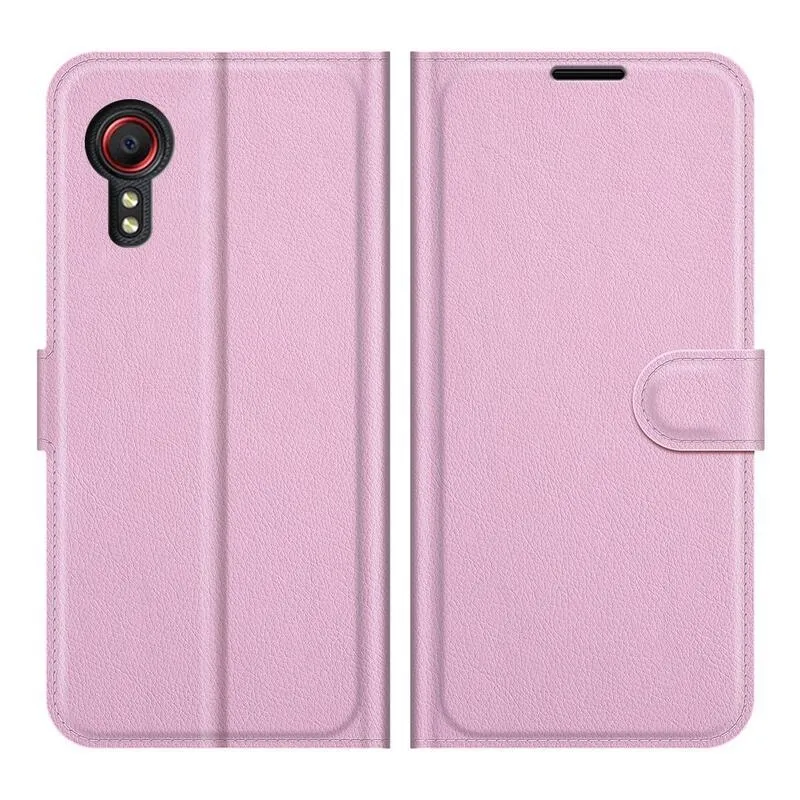 Litchi PU bőr pénztárca tok Samsung Galaxy Xcover 5 - rózsaszín