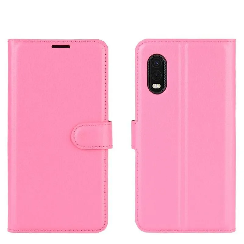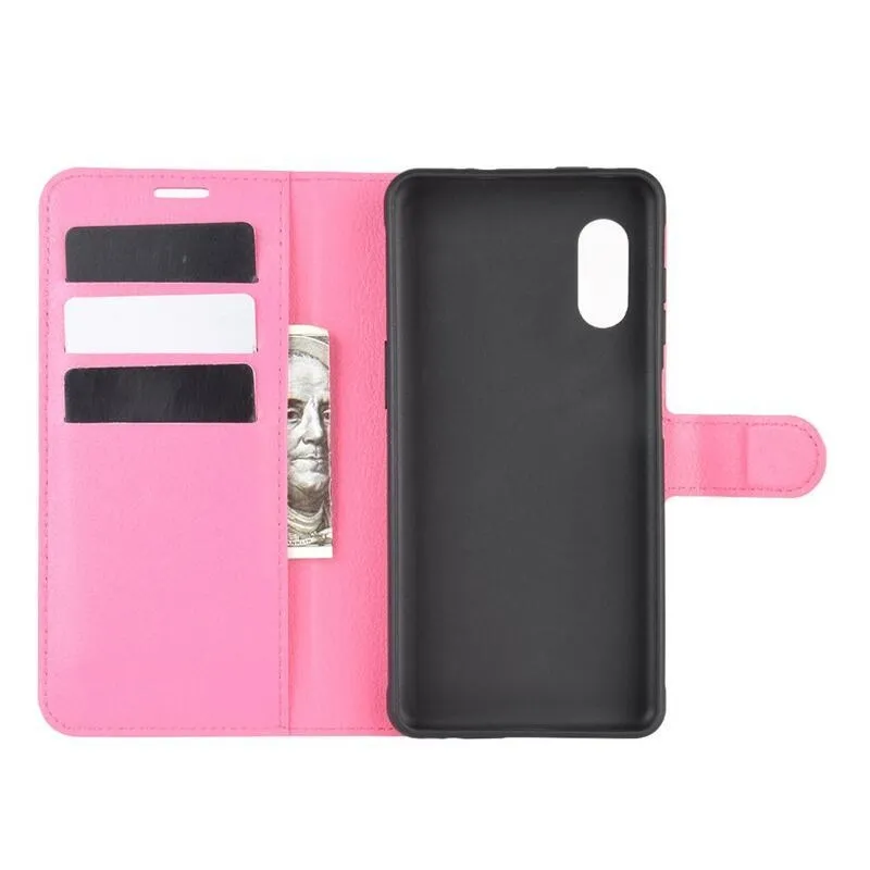 Litchi PU bőr pénztárca tok Samsung Galaxy Xcover Pro - rózsaszínű