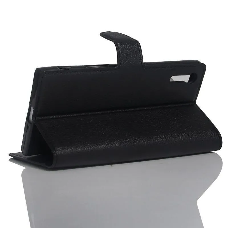Litchi PU bőr pénztárca tok Sony Xperia XZ-hez - fekete