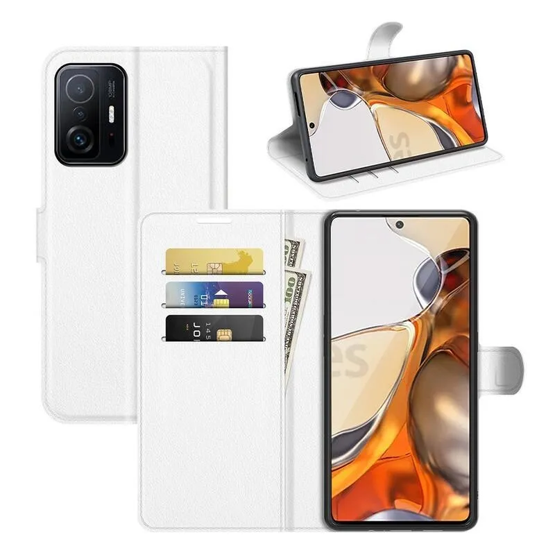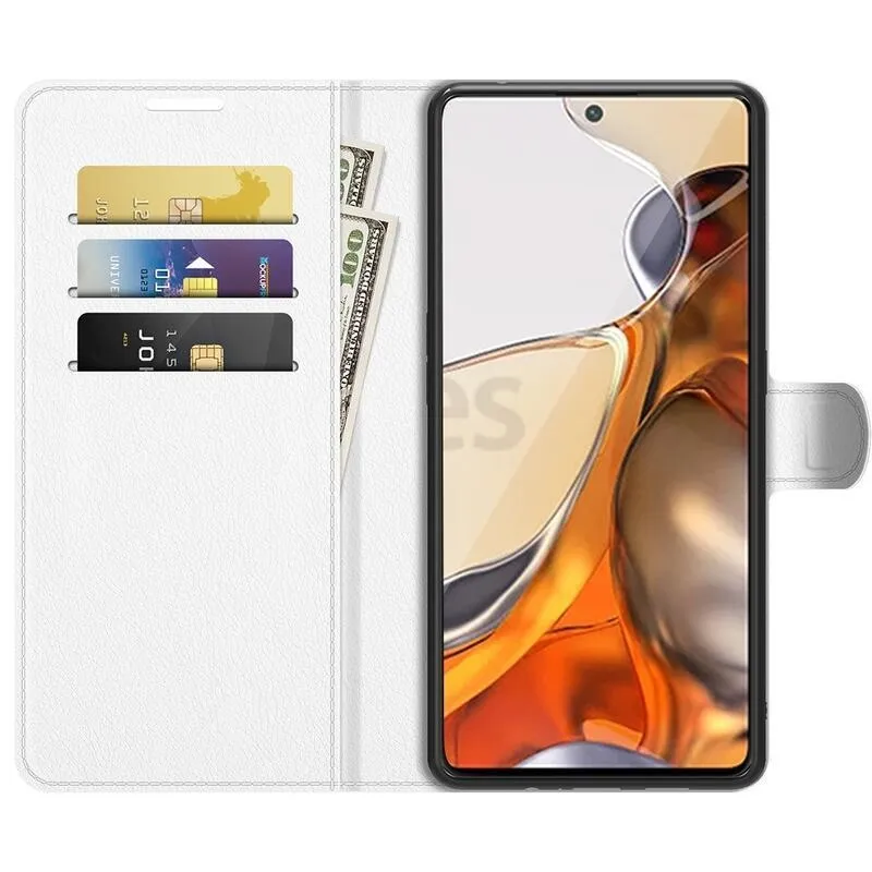Litchi PU bőr pénztárca tok Xiaomi 11T/11T Pro - fehér