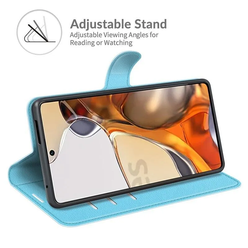 Litchi PU bőr pénztárca tok Xiaomi 11T/11T Pro - kék