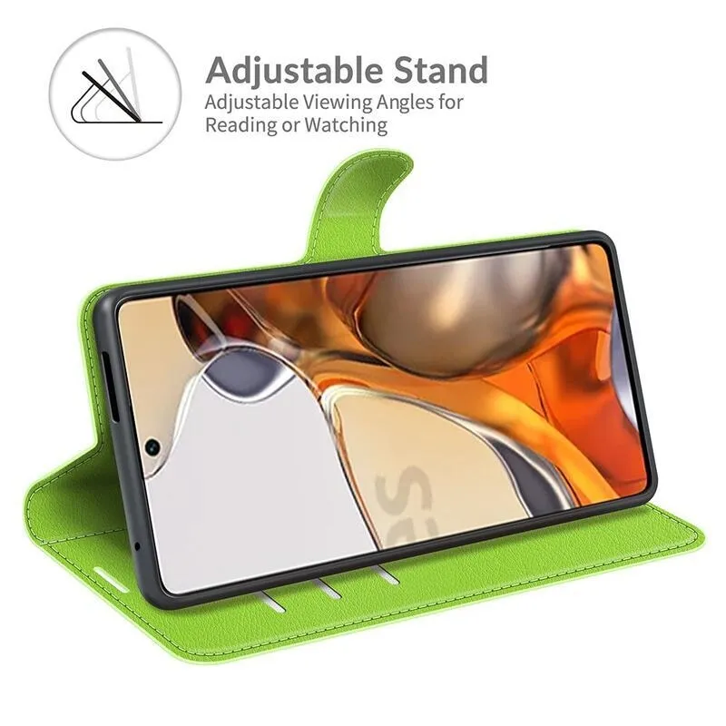 Litchi PU bőr pénztárca tok Xiaomi 11T/11T Pro - zöld
