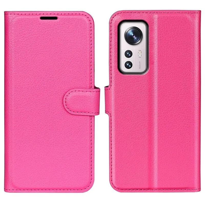 Litchi PU bőr pénztárca tok Xiaomi 12 Pro - rózsaszínű