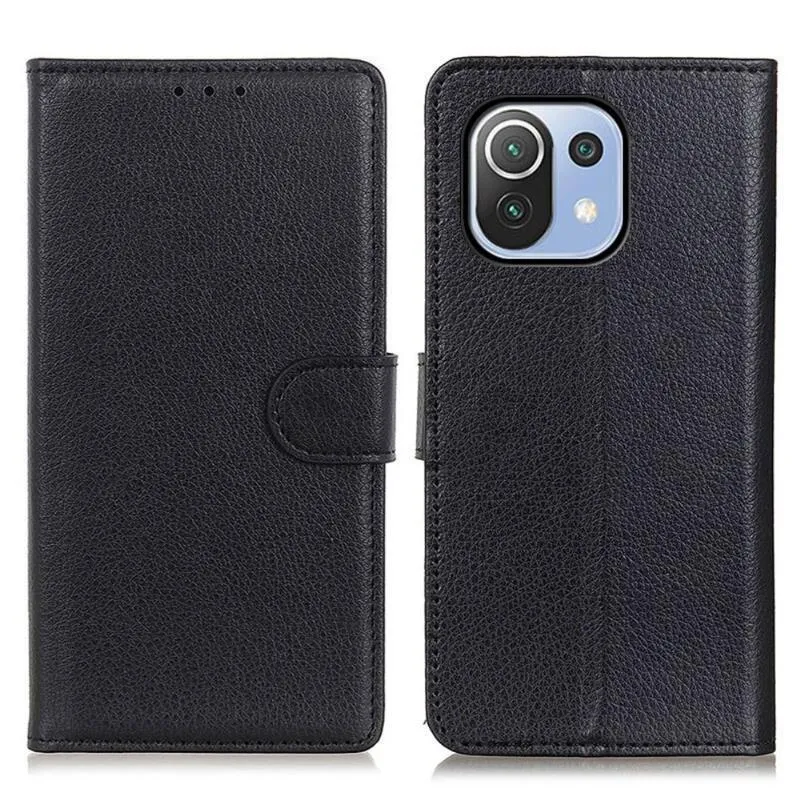 Litchi PU bőr pénztárca tok Xiaomi Mi 11 Lite 4G/5G/11 Lite 5G NE - fekete