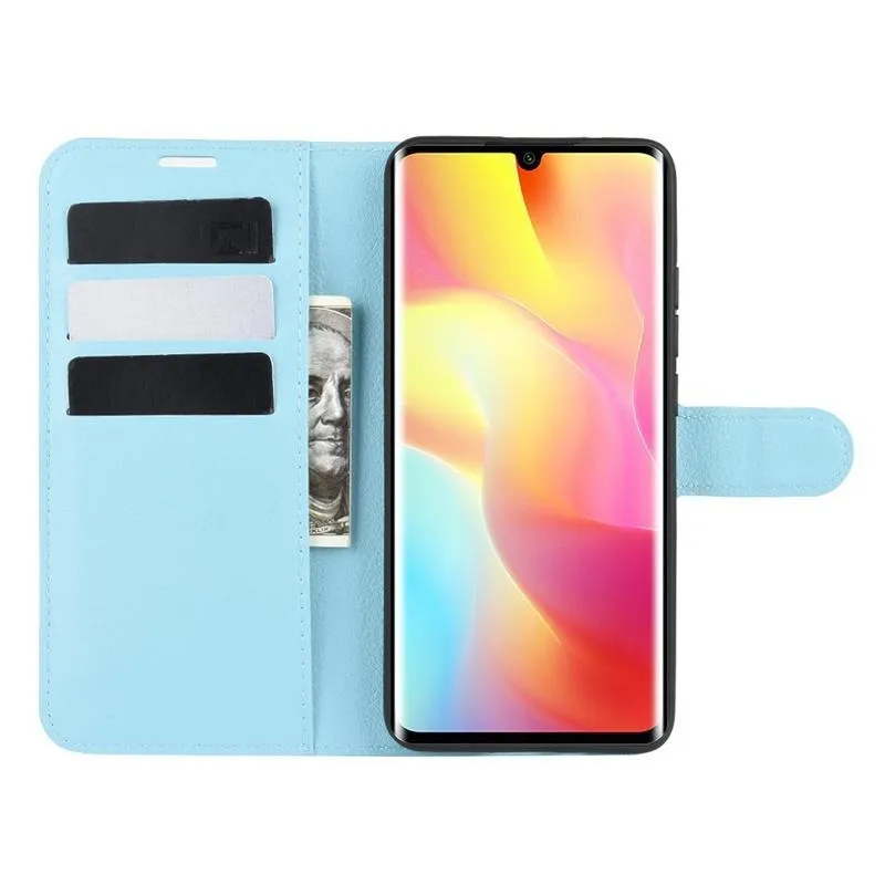 Litchi PU bőr pénztárca tok Xiaomi Mi Note 10 Lite-hoz - kék