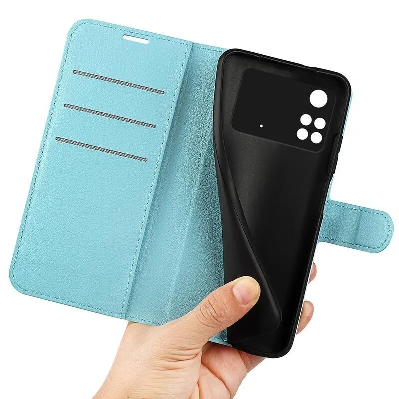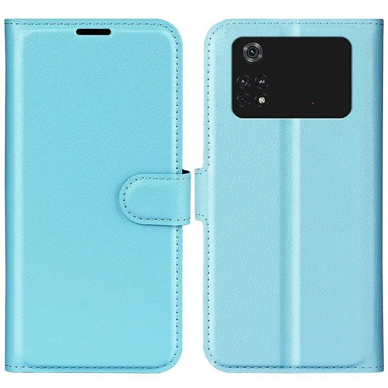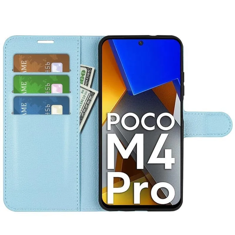 Litchi PU bőr pénztárca tok Xiaomi Poco M4 Pro 4G - kék