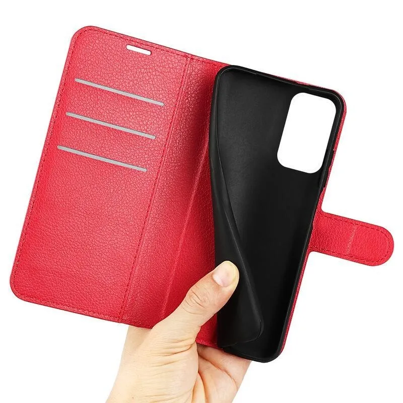 Litchi piros könyv tok Xiaomi Poco M4 Pro 5G / Redmi Note 11S 5G számára