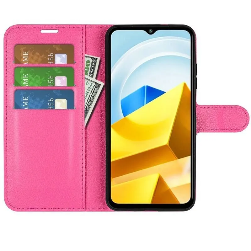 Litchi PU bőr pénztárca tok Xiaomi Poco M5 - rózsa