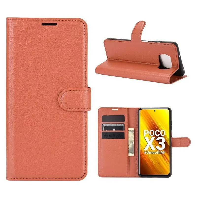 Litchi barna könyv tok Xiaomi Poco X3/X3 Pro számára