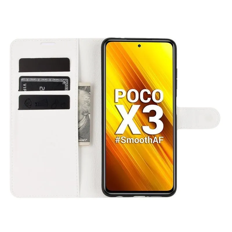Litchi PU bőr pénztárca tok Xiaomi Poco X3/X3 Pro - fehér