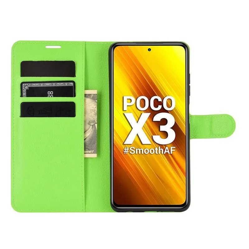 Litchi PU bőr pénztárca tok Xiaomi Poco X3/X3 Pro - zöld