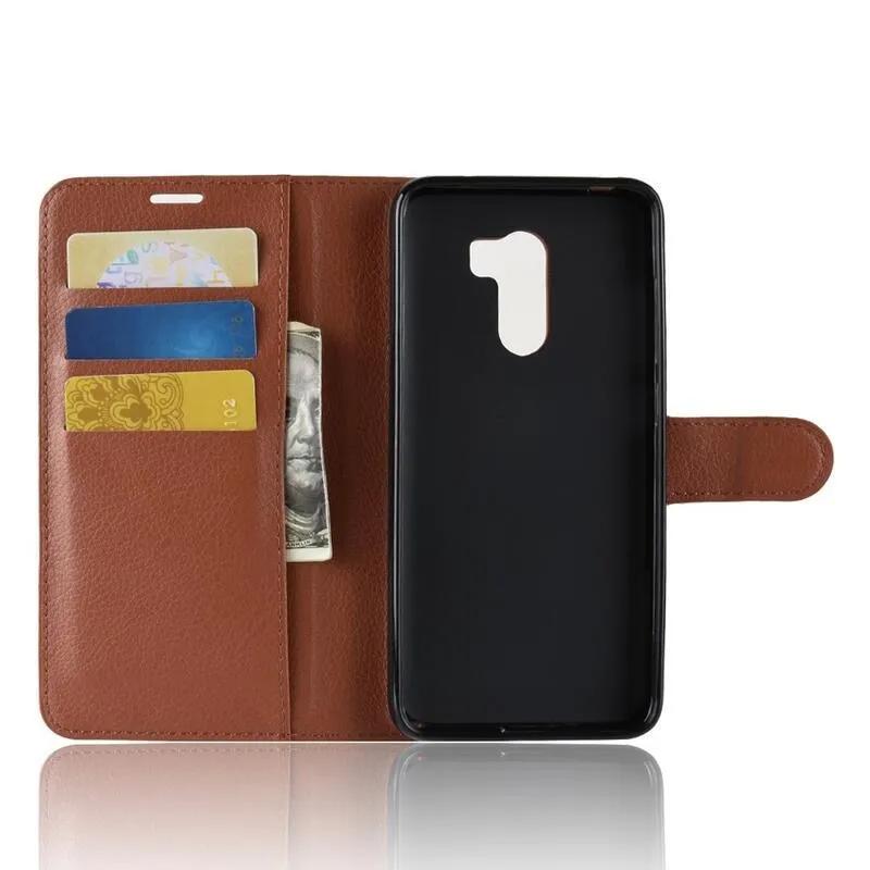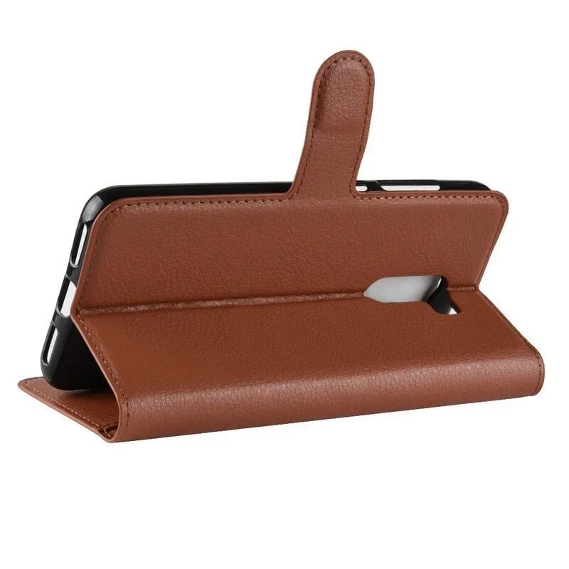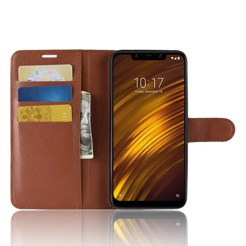 Litchi PU bőr pénztárca tok Xiaomi Pocophone F1-hez - barna