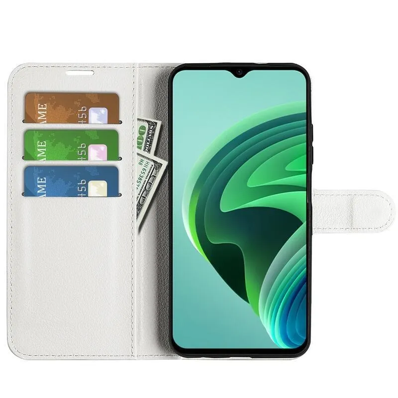 Litchi PU bőr pénztárca tok Xiaomi Redmi 10 5G - fehér