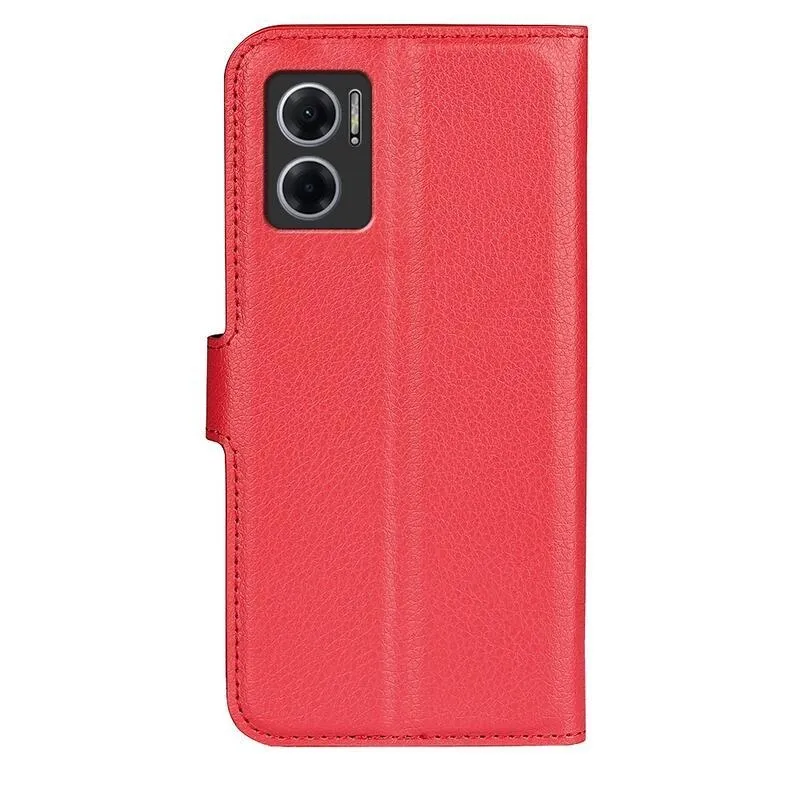 Litchi PU bőr pénztárca tok Xiaomi Redmi 10 5G - piros