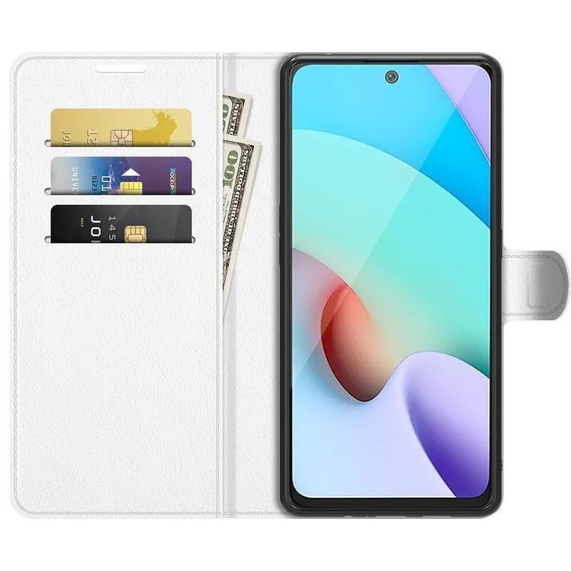 Litchi PU bőr pénztárca tok Xiaomi Redmi 10/Redmi 10 (2022) - fehér