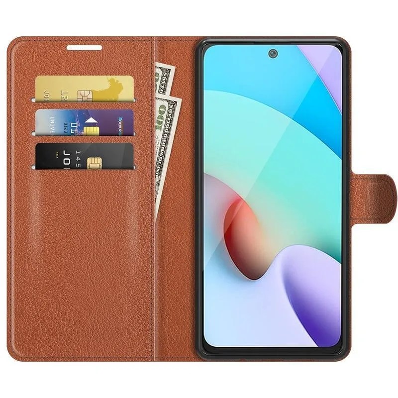 Litchi barna könyv tok a Xiaomi Redmi 10/Redmi 10 (2022) számára