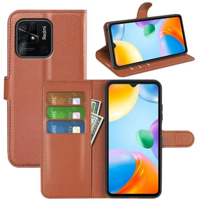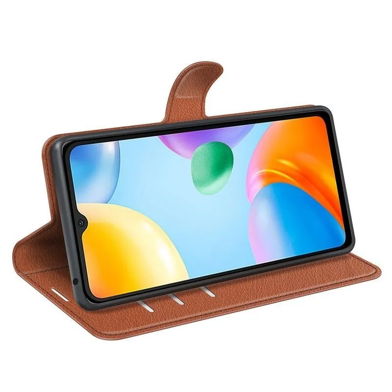 Litchi barna könyv tok Xiaomi Redmi 10C számára
