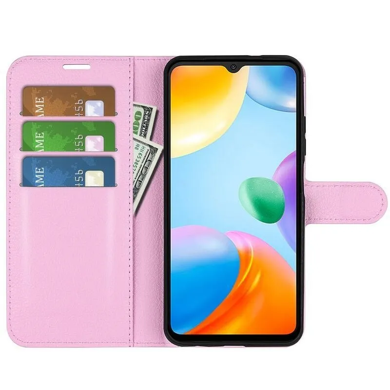 Litchi PU bőr pénztárca tok Xiaomi Redmi 10C-hez - rózsaszínű