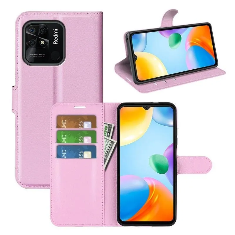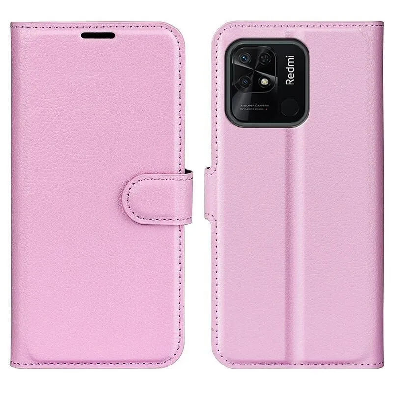 Litchi rózsaszín könyv tok a Xiaomi Redmi 10C-hez