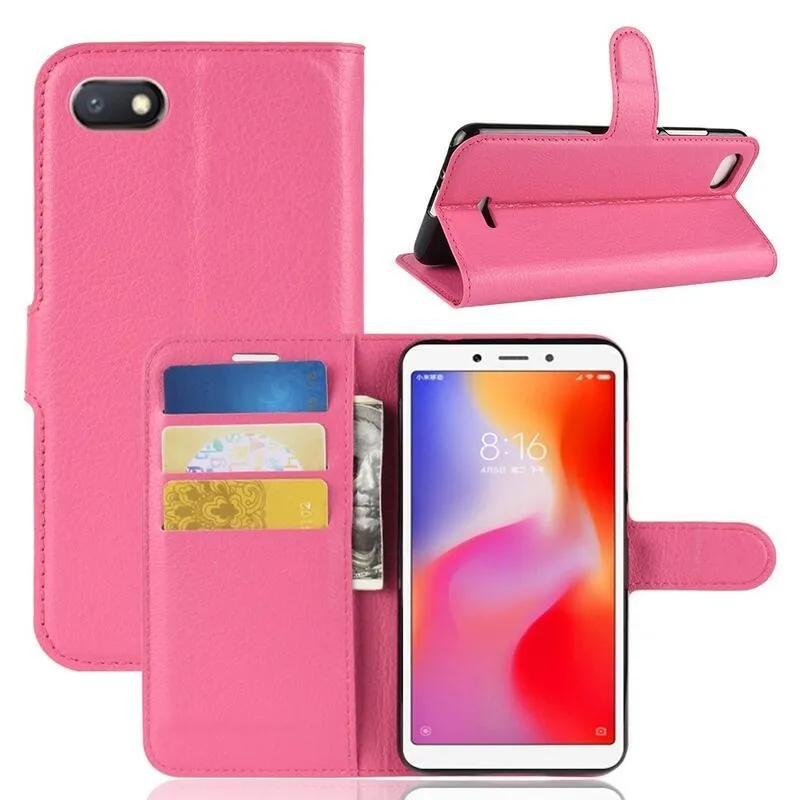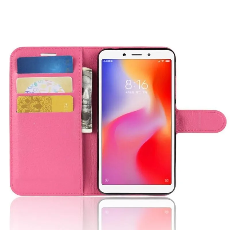Litchi PU bőr pénztárca tok Xiaomi Redmi 6A - rózsa