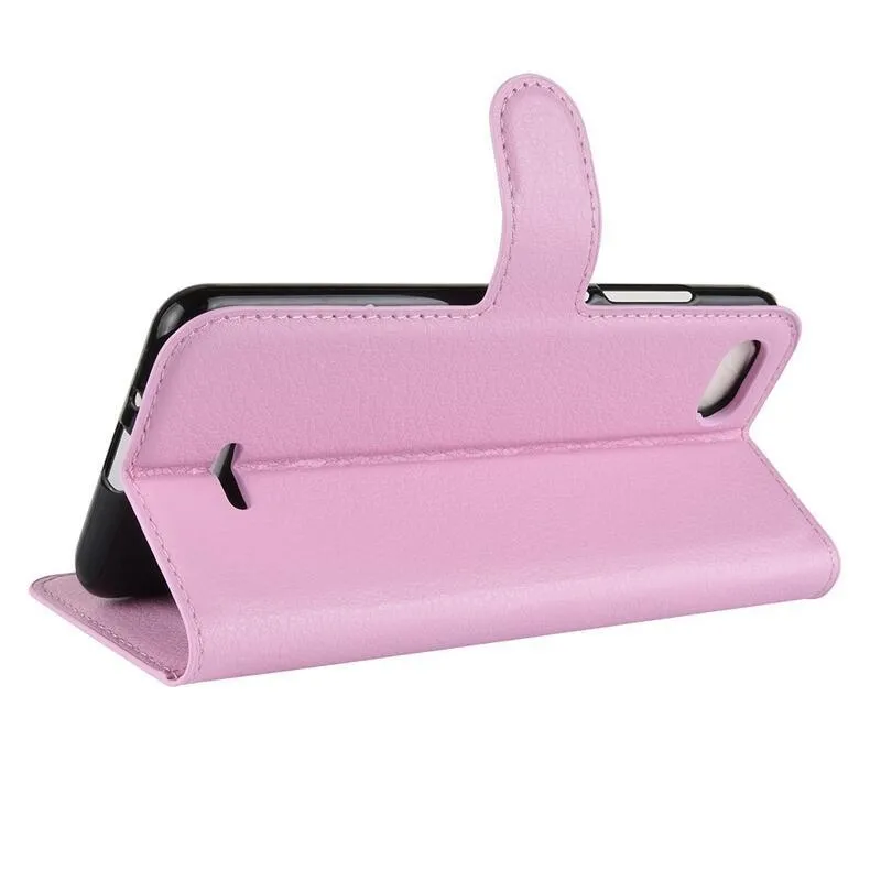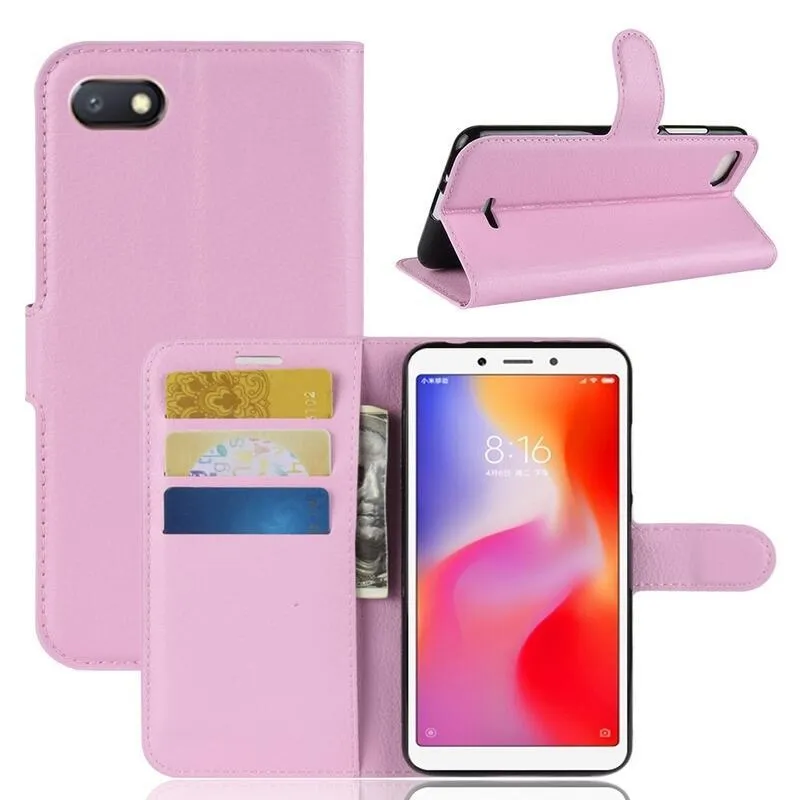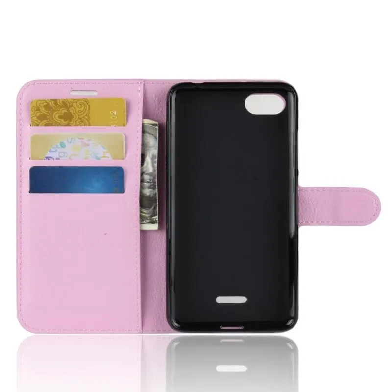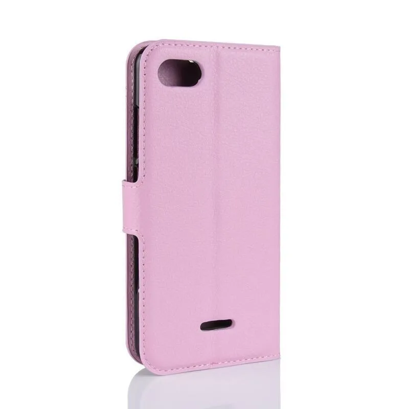 Litchi PU bőr pénztárca tok Xiaomi Redmi 6A - rózsaszínű