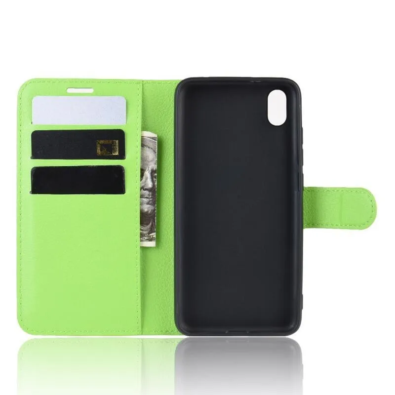 Litchi PU bőr pénztárca tok Xiaomi Redmi 7A-hoz - zöld