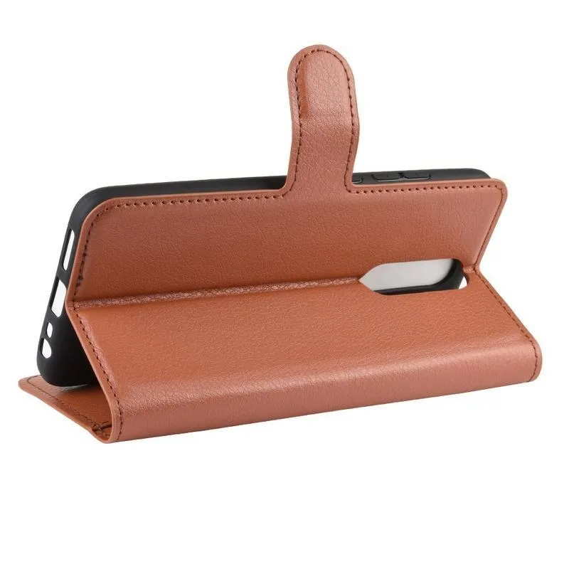 Litchi PU bőr pénztárca tok Xiaomi Redmi 8-hoz - barna