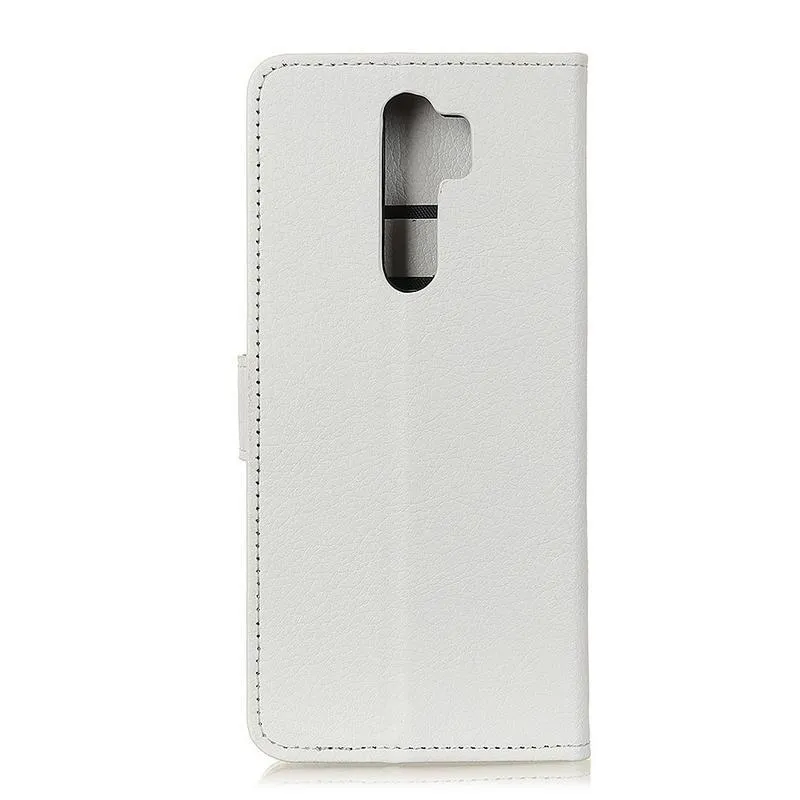 Litchi PU bőr pénztárca tok Xiaomi Redmi 9-hez - fehér