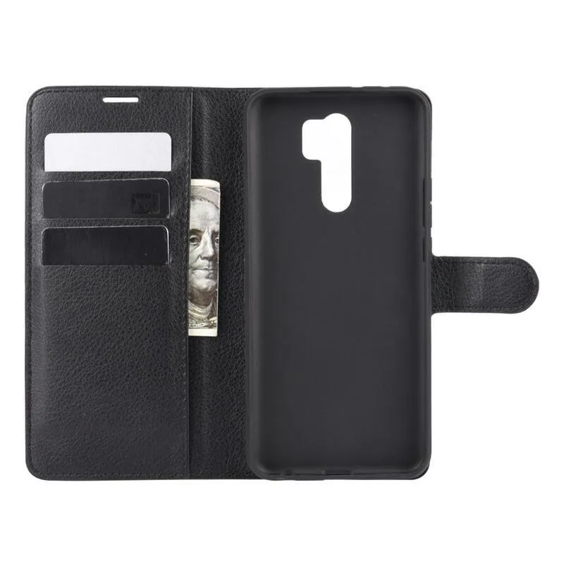 Litchi PU bőr pénztárca tok Xiaomi Redmi 9 mobiltelefonhoz - fekete