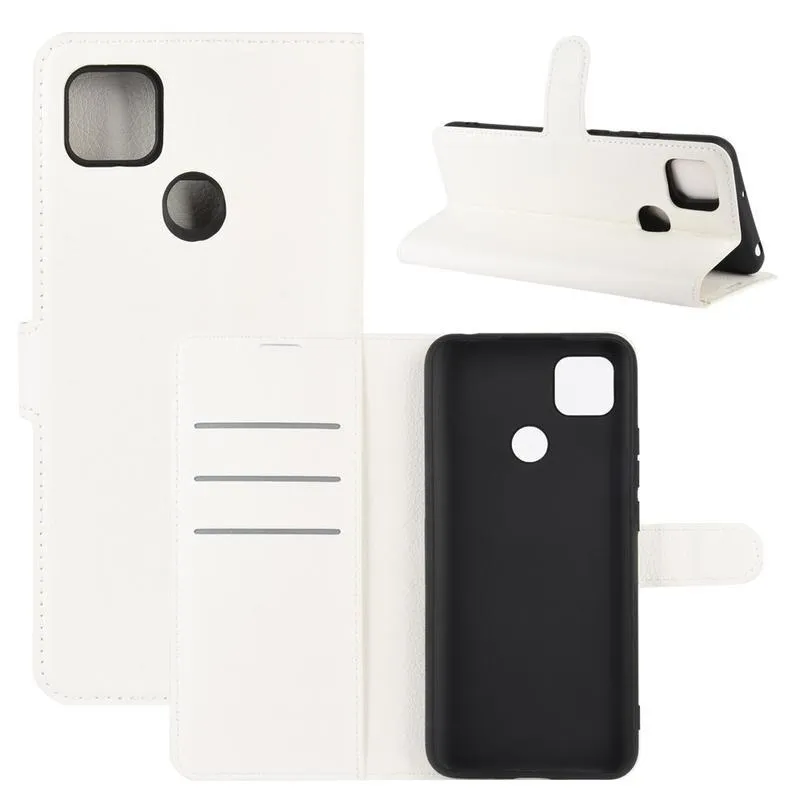 Litchi PU bőr pénztárca tok Xiaomi Redmi 9C-hez - fehér