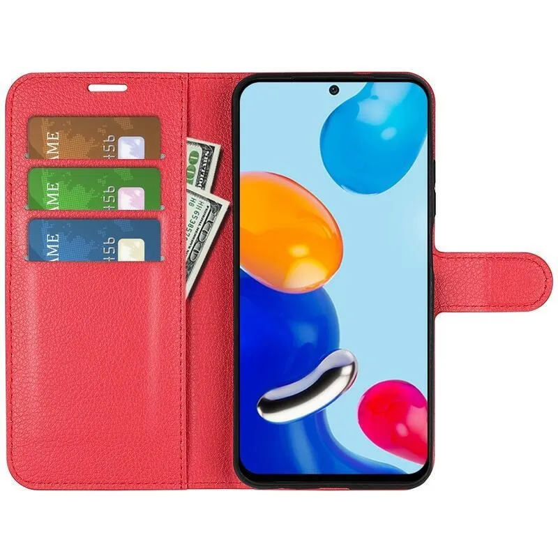 Litchi PU bőr pénztárca tok Xiaomi Redmi Note 11 4G/Note 11S 4G - piros