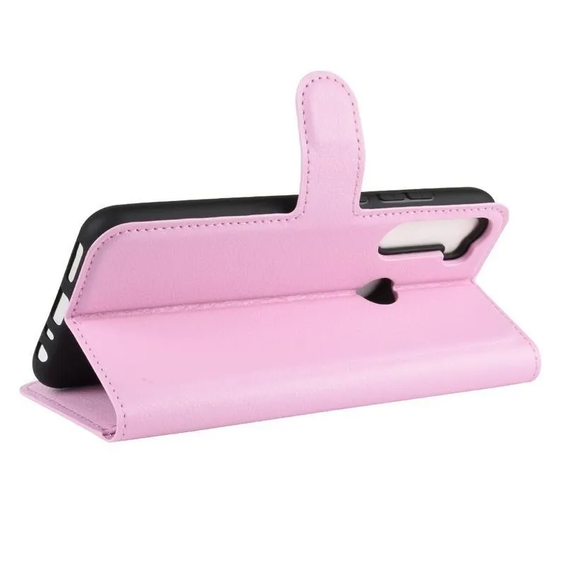 Litchi PU bőr pénztárca tok Xiaomi Redmi Note 8-hoz - rózsaszín