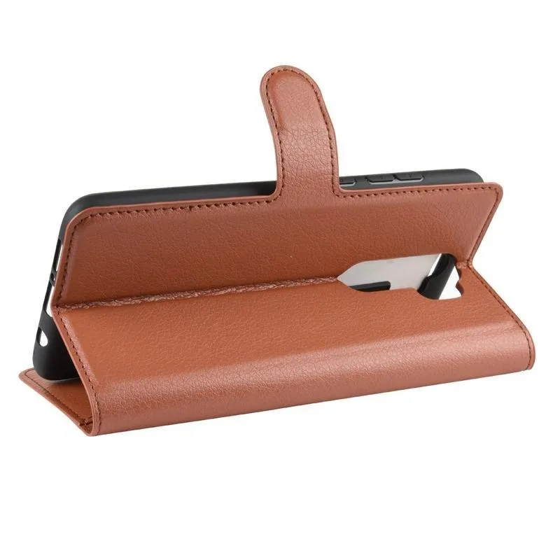 Litchi PU bőr pénztárca tok Xiaomi Redmi Note 8 Pro-hoz - barna