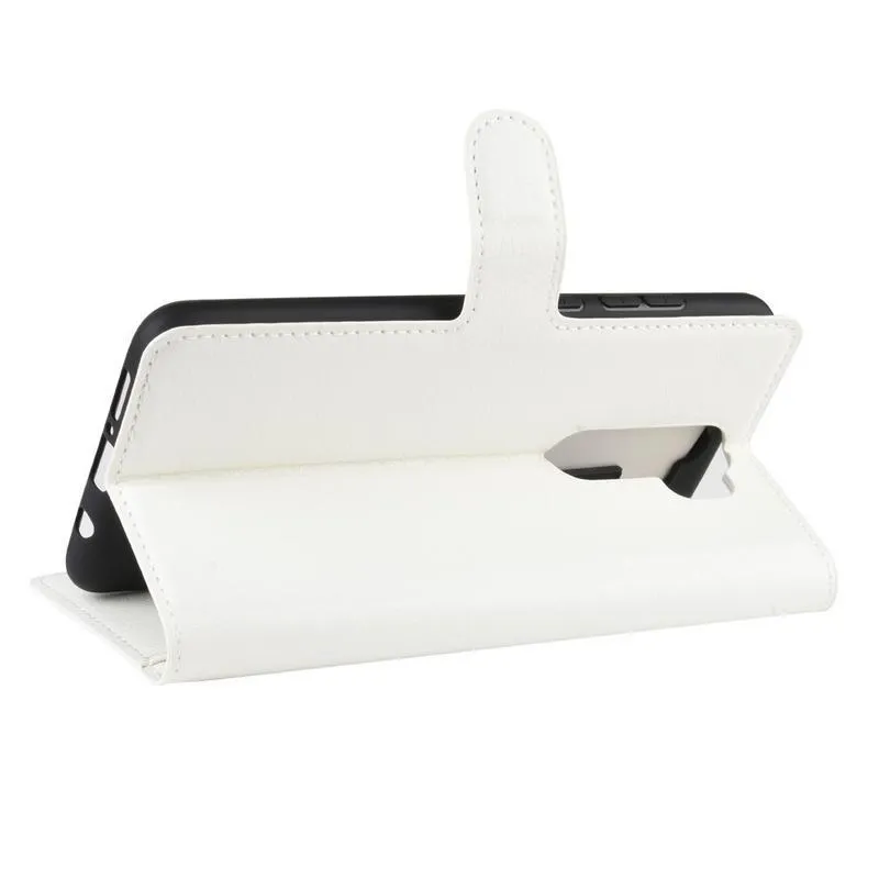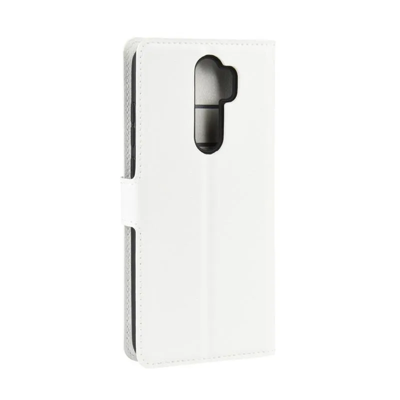 Litchi PU bőr pénztárca tok Xiaomi Redmi Note 8 Pro-hoz - fehér