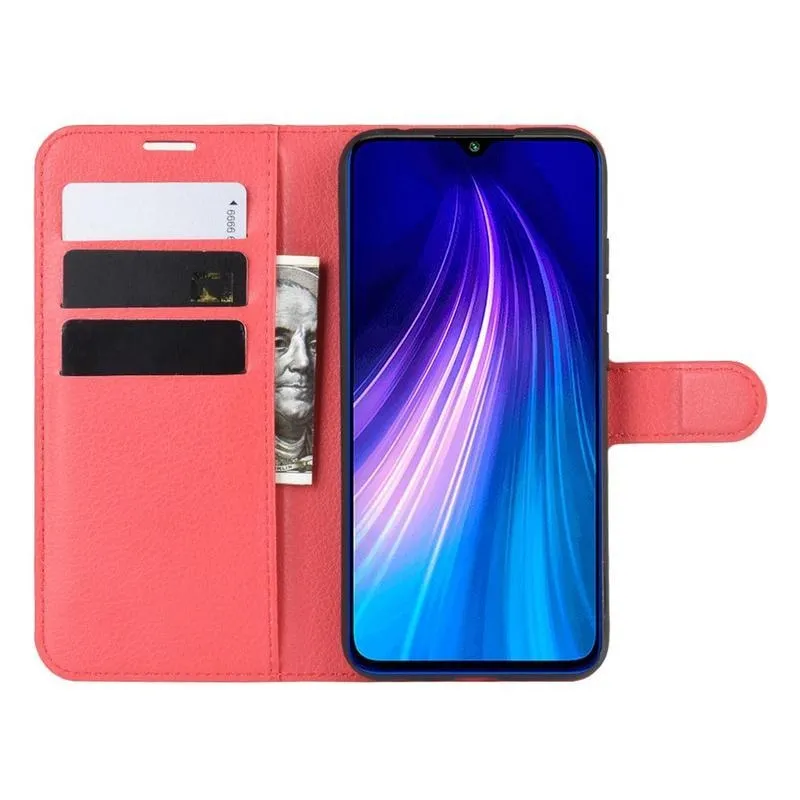 Litchi piros könyv tok a Xiaomi Redmi Note 8T számára