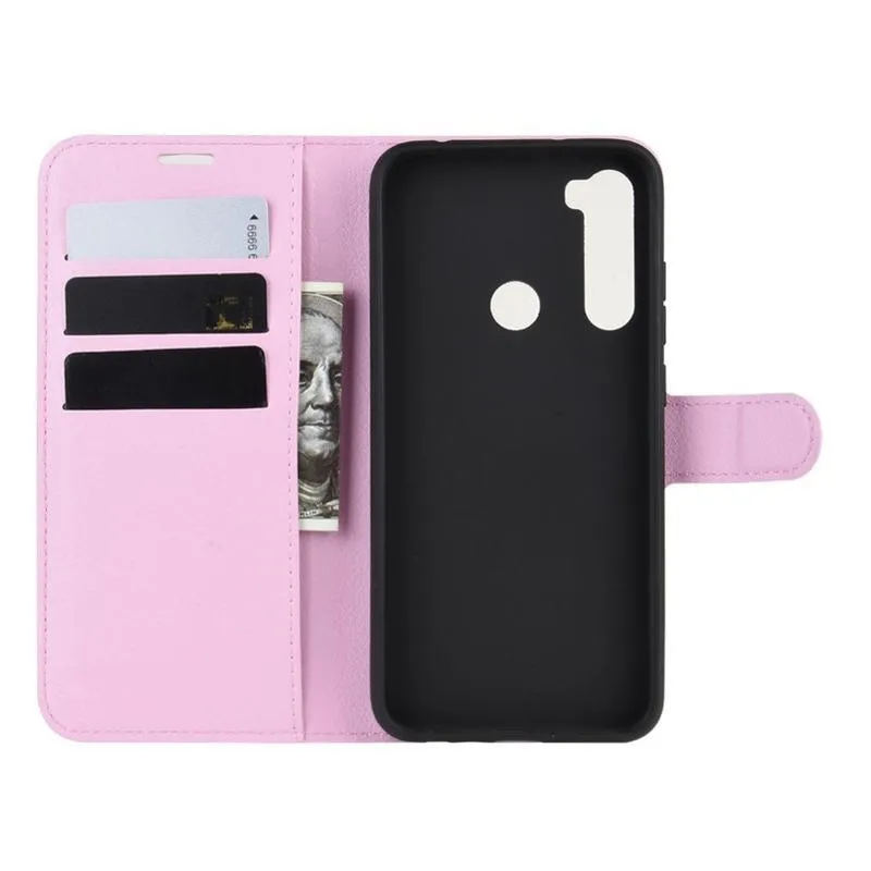 Litchi PU bőr pénztárca tok Xiaomi Redmi Note 8T-hez - rózsaszínű